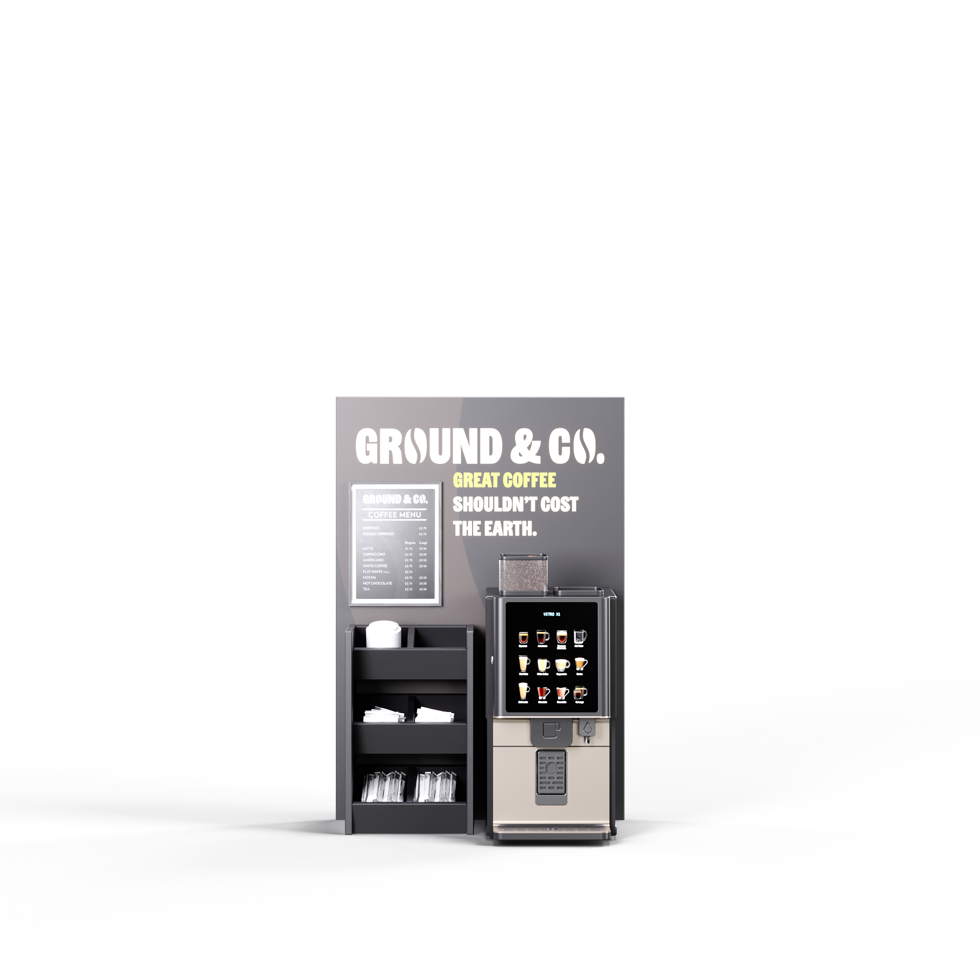 All our coffee to go machines are compatible with our Grounds For Good initiative, which see’s a select amount of profits from every cup go to a local charity of your choice. With Grounds For Good you’ll not only benefit from additional marketing & PR resources, but you’ll also be giving back to your community, one cup at a time.
